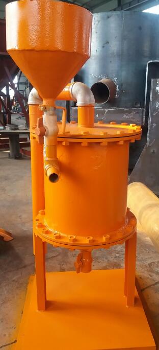 汞膏蒸餾罐是中小型礦山常用的汞膏蒸餾設備。 由于汞的氣化溫度圓低于金的熔點和沸點,常用蒸餾的方法使汞膏中的汞和金進行分離。 金選廠產出的固體汞膏可定期進行蒸餾。操作時將固體汞膏置于密封的鑄鋼罐內, 罐頂與裝有冷凝管的鐵管相連。將鐵罐置于焦炭,煤氣或電爐等加熱爐中加熱, 當溫度緩緩升至356度時,汞膏中的汞即氣化并沿鐵管外逸, 經冷凝后呈球狀液滴低于盛水的容器中加以回收。