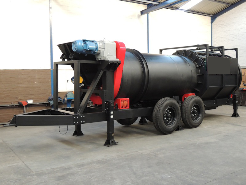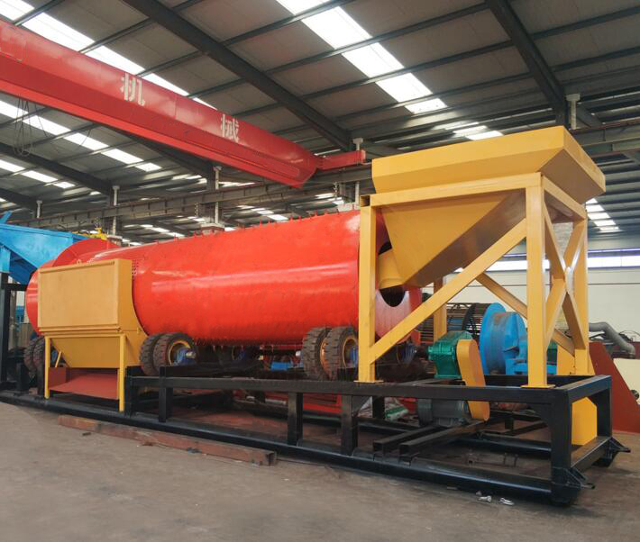 砂金洗礦機利用旋轉的圓筒和內部的刮板以及物料中自有的卵石和巖石來分解粘土,塊狀物和軟氧化物。洗礦機的圓筒慢慢地旋轉,類似于一個洗衣機。粗細不同的物料還有水同時在一起翻滾攪動,把有用礦物從泥性土壤,粘土中釋放出來,分散均勻后漿狀般的物料被圓筒送到尾端,并從溢流口排到錐形篩進行篩分.錐形篩把大粒度且無價值的物料排除,篩下的礦漿可直接進入選礦設備,如水套離心機,鼓動溜槽,蠕動溜槽,自動選金機等。選金車