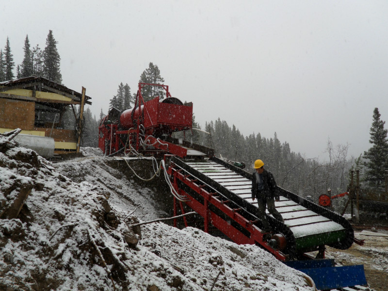 沙金自動洗選機由擋邊皮帶、機架、托輥、驅動輪、從動輪、精礦自動回收、尾礦自動排棄、濃度調節料斗、動力等部分組成。