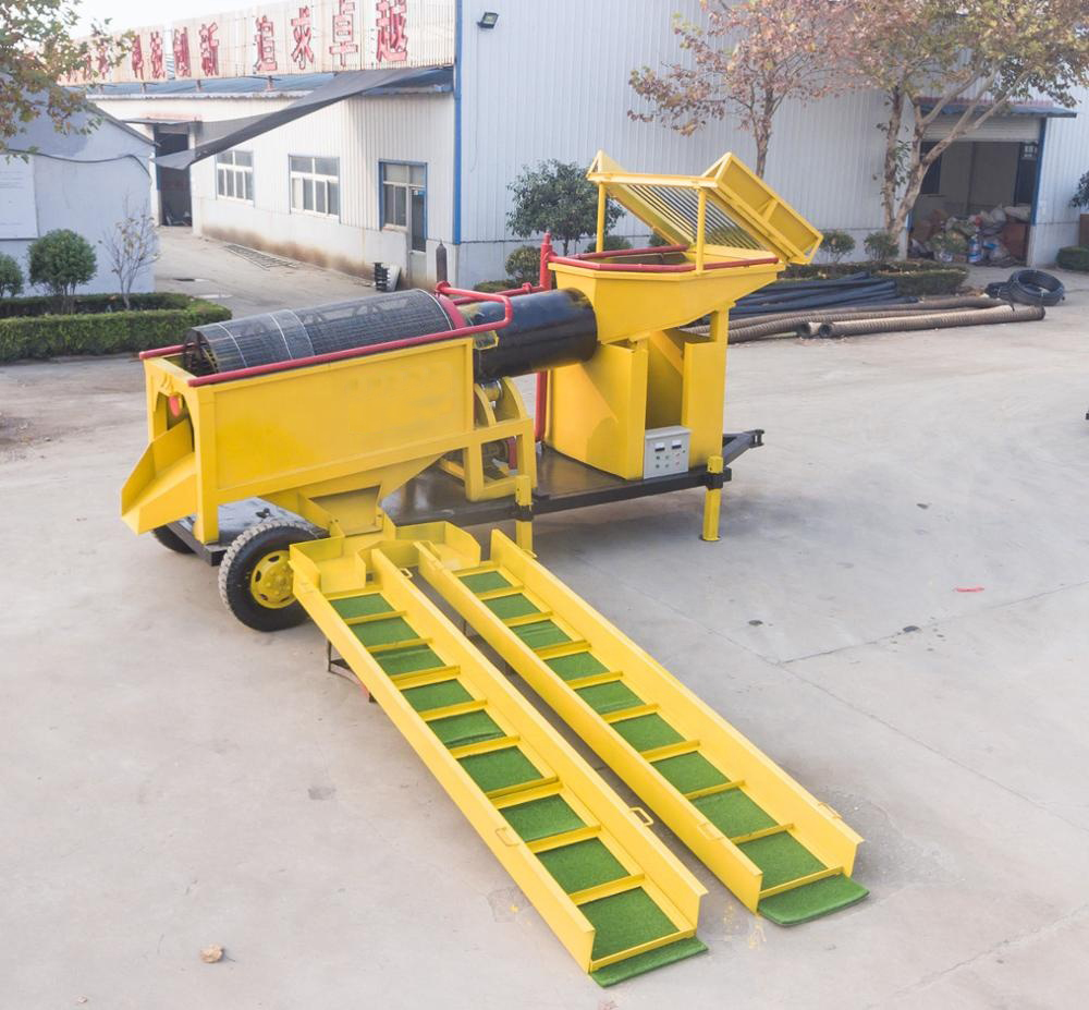 淘金車是一種在陸地上可移動(dòng)的選金設(shè)備,它有著結(jié)構(gòu)緊湊、重量輕、處理量大、操作簡單、且易維護(hù)、移動(dòng)方便等。該設(shè)備主要用于旱地沙灘、河道是一種重力選礦設(shè)備主要用于沙金礦的和脈礦中的單體金的回收工作。可用挖掘機(jī)、鏟車、汽車隨時(shí)拖動(dòng)。采用輪式底架,可牽引車拖拽。