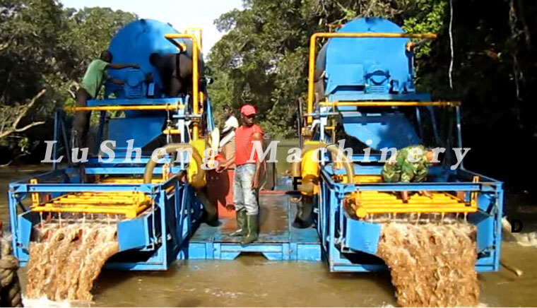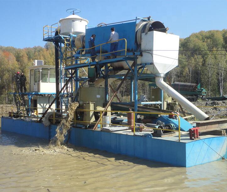 本淘金船具有投資成本合理、回收率高、能耗少、操作簡單、移動方便簡單、等特點,是河道沙金開采的設(shè)備。