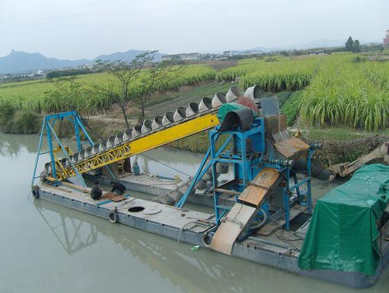 溜槽淘金船是目前使用率比較廣的淘金船,溜槽可以有幾種選擇比如:蠕動溜槽、鼓動溜槽、振動溜槽、循環(huán)溜槽、固定溜槽等。可以根據(jù)黃金形態(tài)進行配套。淘金船的產(chǎn)量和回收率可以根據(jù)客戶的要求定制。