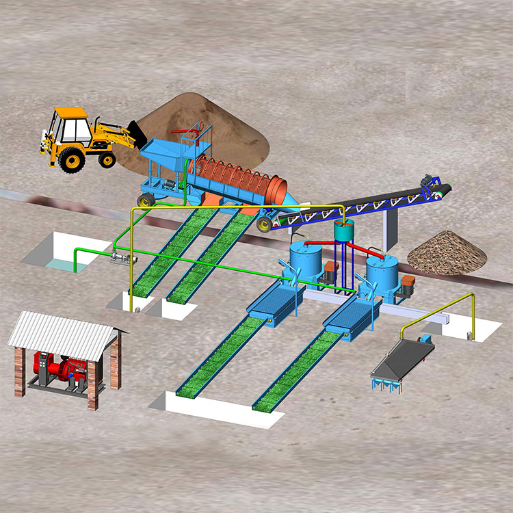 沙金礦一般分為幾種,一般有陸地的,也被稱為旱地的沙金礦,直接采用沙金礦設備,移動式的使用的比較多,現在還有全自動的,沒有易損件的,回收率高的。這種旱地、陸地的沙金礦,可以直接采用勾機、裝載機、自卸車等進行上料,通過設備進行篩分,和黃金回收,黃金回收是把黃金從沙子分離出來,得到黑黑的重沙,然后進行精選,把各種重金屬分離,把黃金從黑沙當中提取出來,這樣出售利潤更多。選金子機器