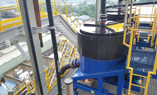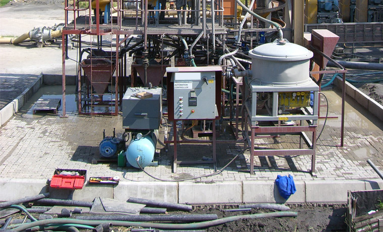 與分選錐面直接接觸的沉積層中為密度大的重礦物,接近給礦器這端的為細粒重礦物,而靠近排礦端的為粗粒重礦物,由于細粒的重礦物會粘結在床面上不易被帶走,所以在精礦槽末端布置了一水力較大的沖洗水管將粘結在床面的細粒重礦物沖洗進精礦槽。精礦槽和尾礦排出口都是可以根據礦區地形條件來進行調 節的,可以為溜槽出口,也可以為管道出口,比較人性化的。選礦離心機